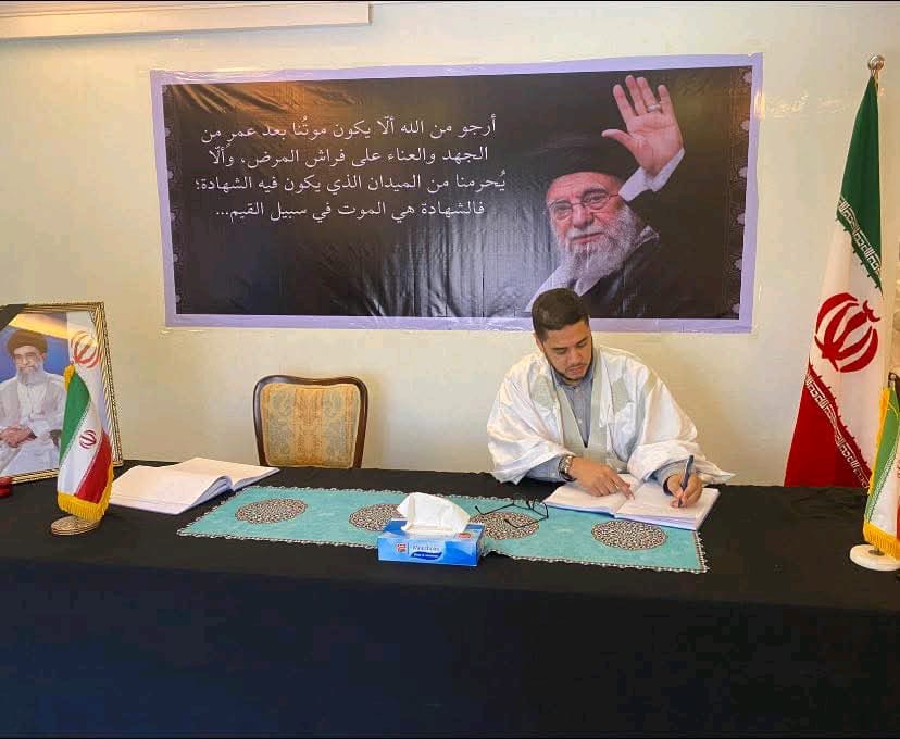وجرى تقديم التعازي بمقر السفارة الإيرانية في نواكشوط، يوم 6 مارس 2026، الموافق 16 رمضان 1447 هـ.