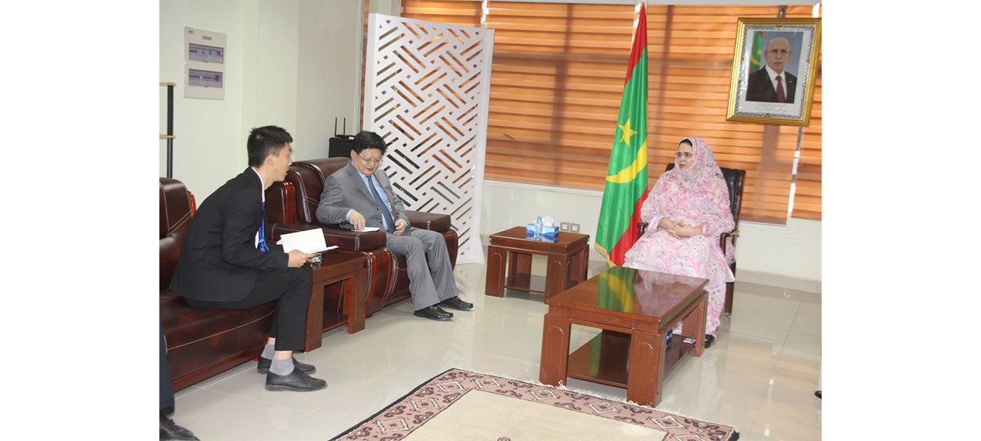 التقت وزيرة التجارة والسياحة، زينب منت أحمدناه، اليوم الأربعاء في نواكشوط، بالسفير الصيني المعتمد لدى موريتانيا تانغ زهونغ دونك.